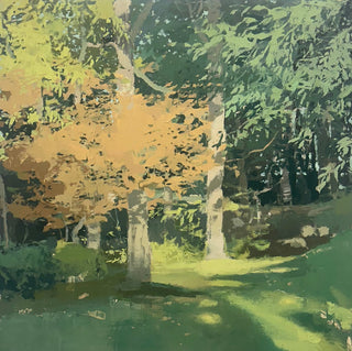 My love of painting landscapes began in the form of a commissioned forest scene inspired by the Bible verse John 8:12, “I am the light of the world. Whoever follows me will not walk in darkness, but will have light of life.” Since this early iteration of the series, I have continued to be called back to the subject in an effort to continue to play with color combinations and perspective. As a subject matter that calls great viewer attention to the contrast of darkness and light, I enjoy revisiting landscapes often.