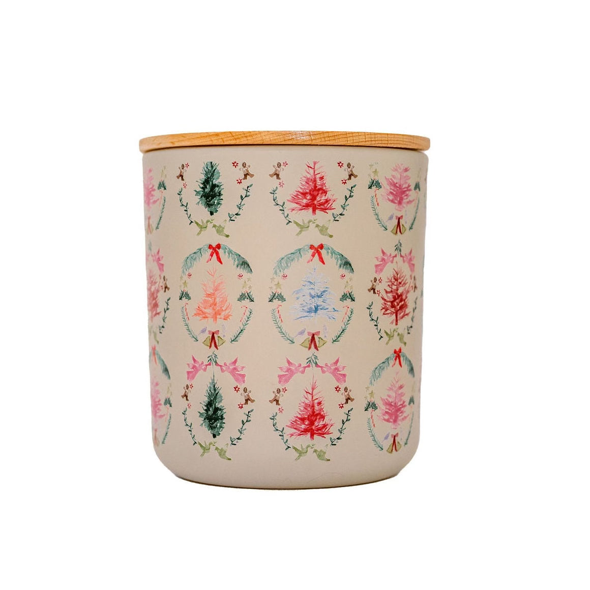 This candle, created using Teil's holiday drawing and filled with a balsam and fir blend, is a festive classic!