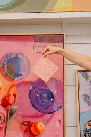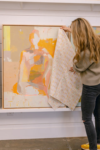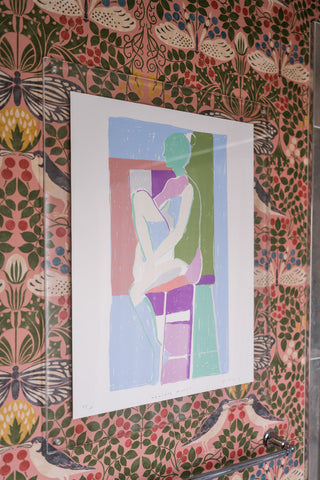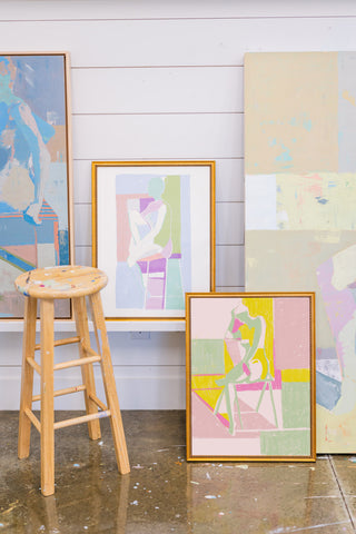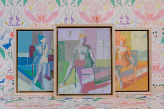 Teil’s Figure Studies have been a predominant and beloved subject matter since the earliest days of her career. Referencing traditional nudes while also diverting from more classical examples, Teil’s female figures are always presented in a contemporary color palette that invites the eye to discern the figure through line, light and shadow. Eye catching when installed within interiors, these works incorporate just enough visual information to communicate to the viewer the proportions, pose and light source of the figure while also telling a bold color story.