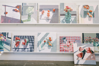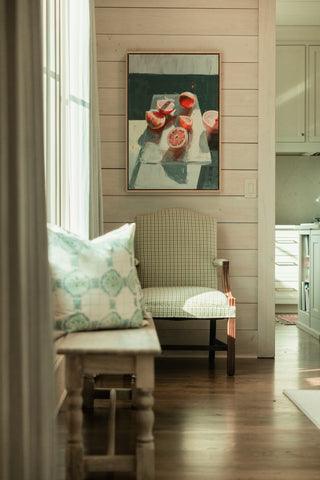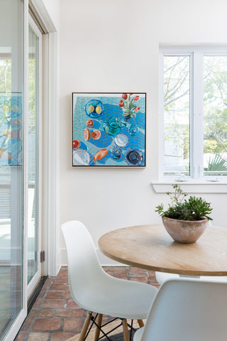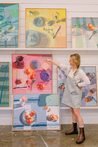 Teil’s still life collection is one she often comes back to to expand. This subject focus highlights the artist’s love of light and shadow. Paintings within this category reflect and portray sunlight traveling through ordinary objects, often daily snapshots of simple things that might ordinarily go unnoticed. Captured in paint, focused on color and composition, Teil’s Still Lives take ordinary and elevate it to extraordinary.