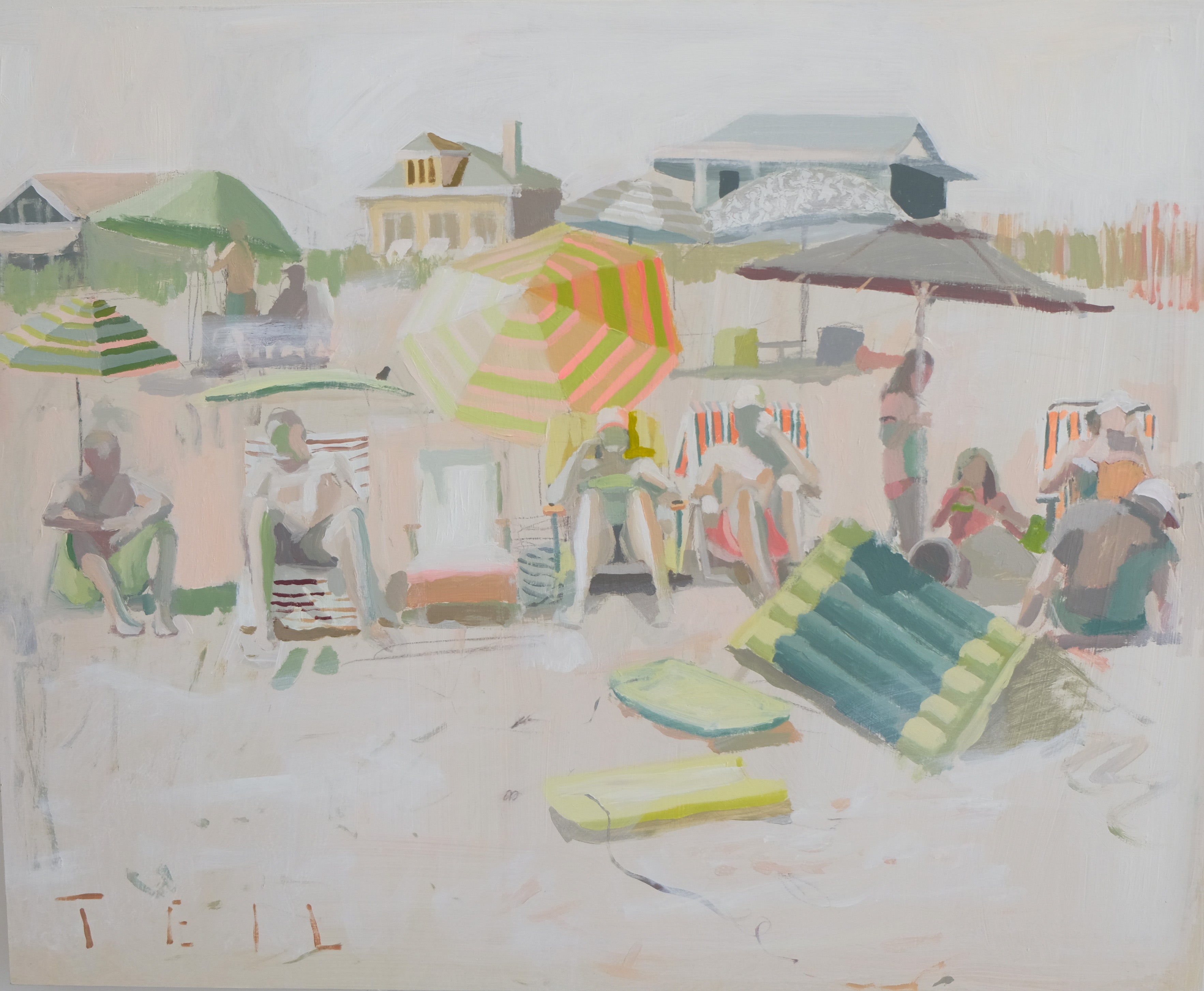 This is a 24"x30" original oil painting on a birchwood panel, signed by Teil.