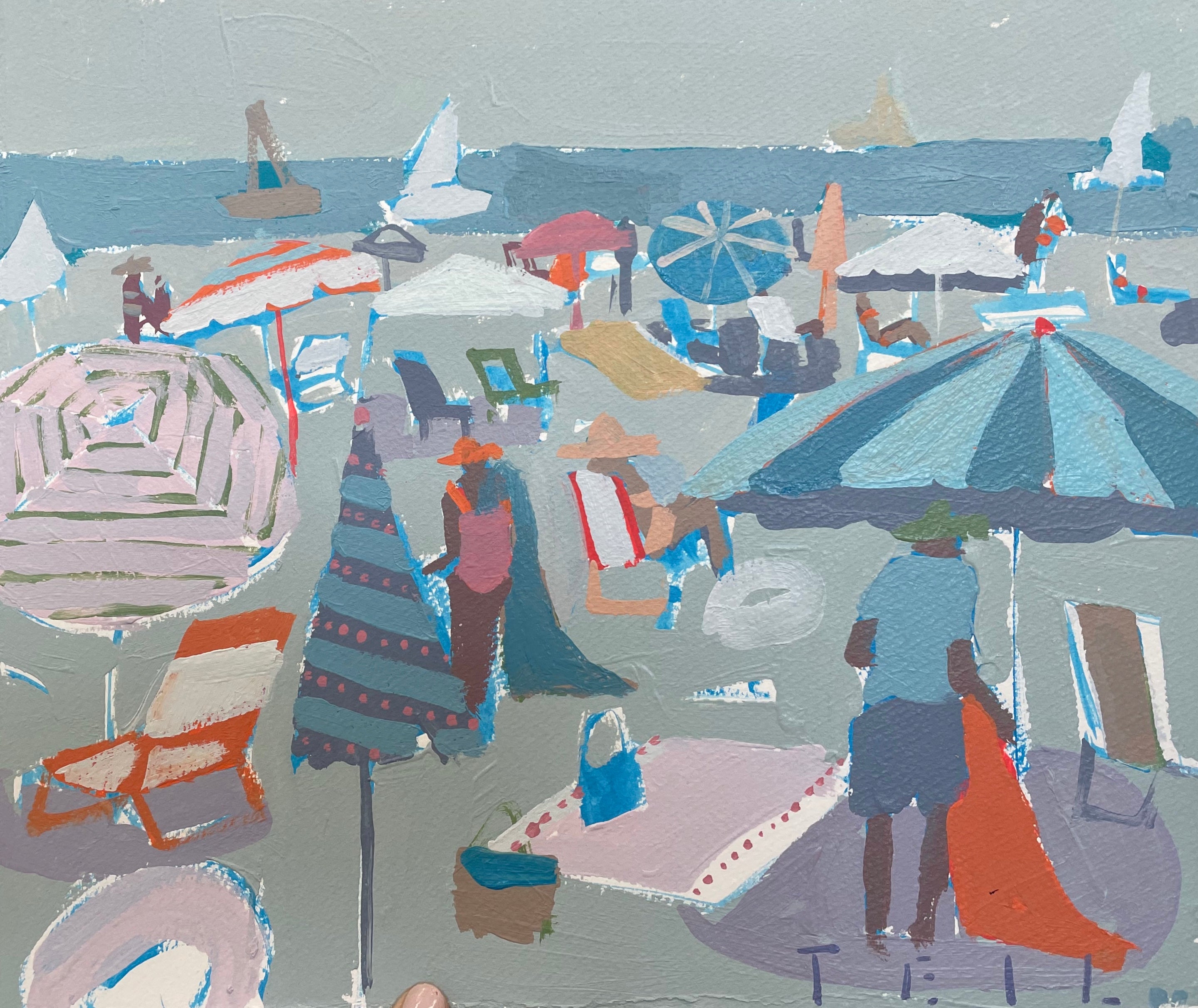 This is an original, acrylic painting on a heavyweight, textured paper with deckled edges.