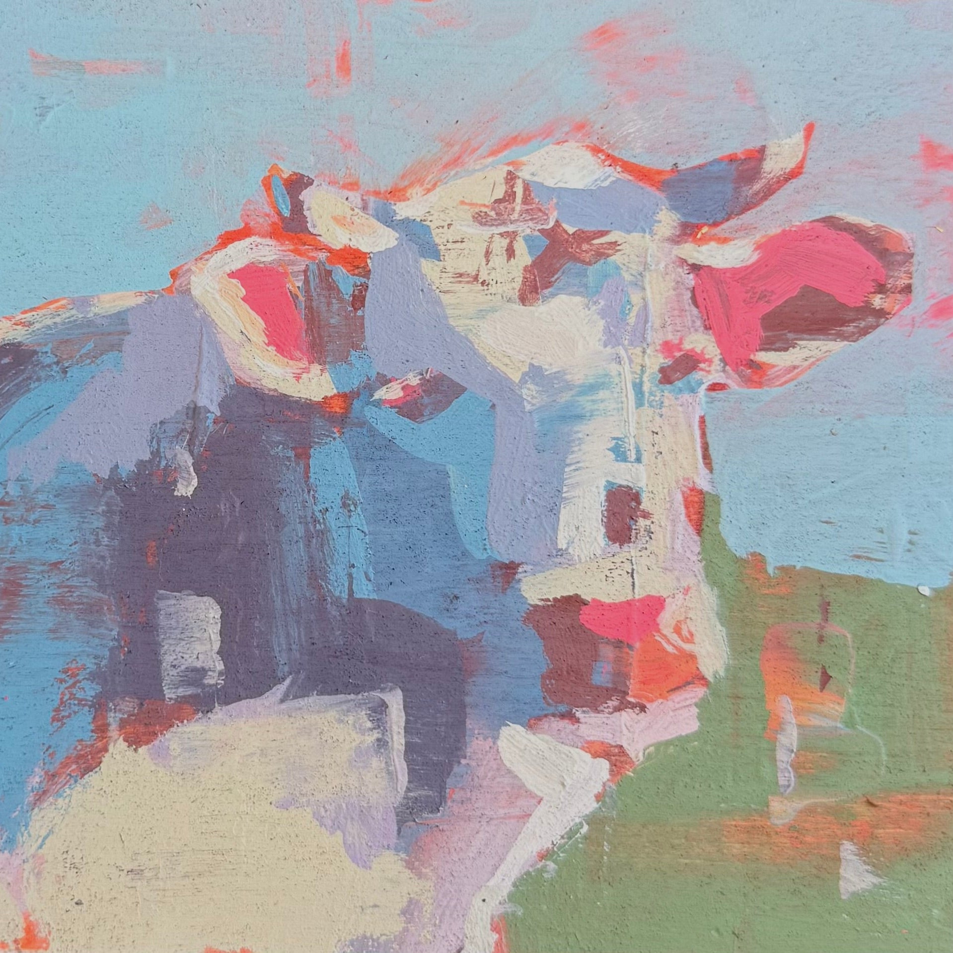 This is an original, acrylic painting on a birchwood panel signed by Teil and framed in a natural, maple floater frame.